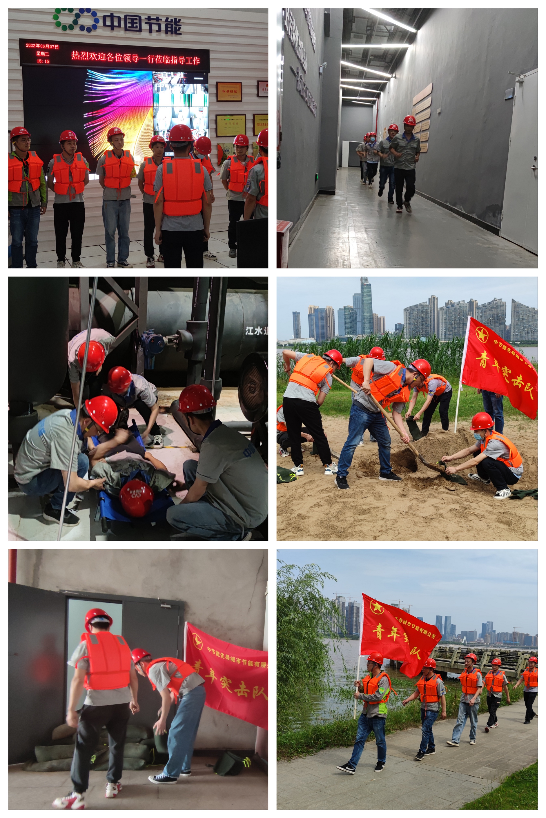 演练现场,按照应急预案要求,首先全体队员学习了安全帽、救生衣的正确佩戴使用,再模拟雨季强降雨天气,湘江水位上涨超过防汛警戒水位,站内工作人员在主机操作时不小心跌落,摔伤脚踝的紧急情况下,公司防汛应急小组接到报告后,宣布启动防汛应急预案并组织抢险队伍准备开展抢险。人员疏散、灌装沙袋、伤员抢救等同步进行,直至顺利筑垒好防汛沙袋,全部人员有序疏散。演练最后,大家参照日常巡查路线对室外管网和取退水头部及湘江大堤开展了集体巡查,能源站站长带领大家实地学习了站内安全疏散通道路线。