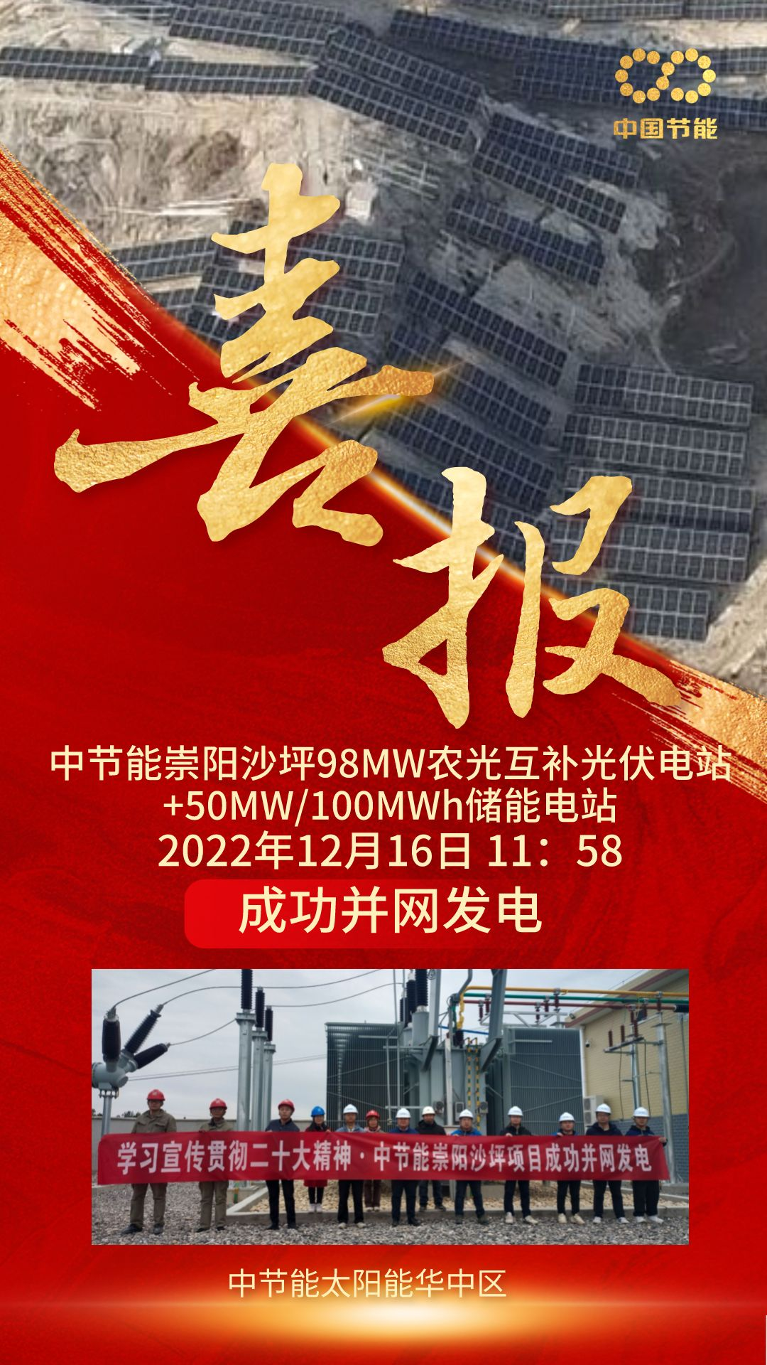 2022年12月16日,太阳能公司华中区中节能崇阳沙坪98MW农光互补光伏发电项目成功并网发电。崇阳沙坪项目位于湖北省咸宁市崇阳县沙坪镇,项目装机容量98MW,同时配套建设50MW/100MWh集中式储能系统。该系统采用磷酸铁锂电池,由20个2.5MW/5MWh储能单元组成,能存储10万kWh电能,并能在1小时保障5万kWh电能供应,是湖北省咸宁市投运的首套大型集中式储能系统。项目并网后,预计每年可为电网提供约10648万千瓦时清洁电能,每年可节约标煤约6万吨,相应可减排二氧化碳约15.8万吨,对持续优化地方能源结构,助力经济社会绿色发展具有积极意义。储能系统并网投运后,主要用于电网调峰、黑启动、需求响应等多种服务,实现电网削峰填谷,缓解迎峰度夏度冬的供电压力,促进新能源消纳,为地方电网安全稳定运行保驾护航。