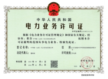 2月16日,中节能平原二期风电场项目取得国家能源局山东监管办公室颁发的电力业务许可证(发电类)。