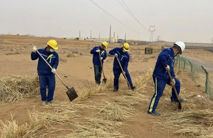 中卫电站地处腾格里沙漠,经常遭受沙害困扰,厂区周边道路常年被流沙侵蚀,导致交通不畅。电站职工充分发扬“雷锋精神”,争当“清沙”志愿者,利用休息日时间,齐心协力开展道路积沙清理工作,并利用草方格固沙的方式,防止沙丘移动再次掩埋道路,给群众带来交通便利的同时也达到了达到了防风固沙、保护生态环境的目的,用实际行动为美丽中国建设作出积极贡献。