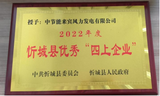 近日,风电来宾公司荣获2022年度忻城县优秀“四上企业”荣誉称号。