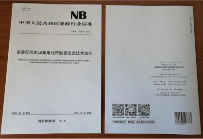 《NB/T 10590-2021多雷区风电场集电线路防雷改造技术规范》是国内首个关于风电场架空集电线路防雷系统改造的行业标准,弥补了现有标准针对风电场内集电线路雷击问题的不足,达到了目前的先进水平,减少了雷击事故,提高了风电行业的安全运行时间。该技术规范由张北运维公司牵头主持编制,云南省能源研究院有限公司、中国华能集团有限公司等22个单位参加起草。制定了多雷区、强雷区风电场架空集电线路防雷改造的勘查、设计、施工及验收等技术要求,已于2021年1月成功发布,同年7月实施。