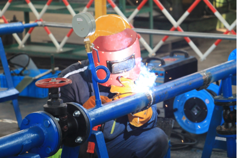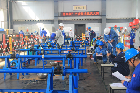 技术比武决赛分理论考试和现场实操两个环节,涵盖焊接、管阀、电控三个专业,来自节能科技公司16家下属公司37名参赛选手齐聚一堂,一决高下。