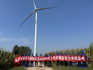 9月16日,中节能尉氏县40MW风力发电项目首台风机机组成功并网发电。