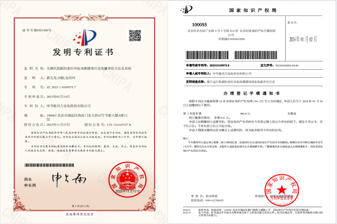 近日,风电公司申报的《无测风数据的老旧风电场重建项目发电量评估方法及系统》《基于运行数据的老旧风电场重建项目发电量评估方法》等两项课题获得国家发明专利授权。两项专利是风电公司风资源技术中心基于老旧风电场“以大代小”项目开展取得的重要技术成果,为风电公司乃至风电行业拓展“以大代小”项目提供重要的技术支撑。