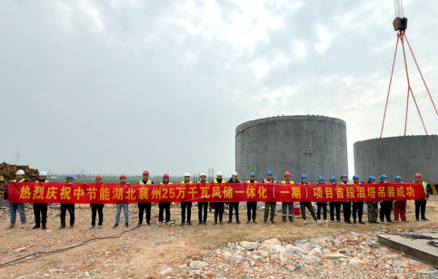 湖北襄州25万千瓦风储一体化项目(一期)规划装机容量10万千瓦,年上网电量1.9亿千瓦时,安装20台5兆瓦风力发电机组,塔筒轮毂中心高度160米,是风电公司目前塔筒设计高度最高的风电项目,同时也是首个应用钢混高塔筒技术的示范工程。该应用采用预制薄壁混凝土塔筒加钢制塔筒组合连接技术,通过预应力锚索与钢转接段连接,建造成本相比钢制塔筒节约8%,具有经济性高、使用寿命长、结构稳定、抗震性能强等优点,更加适应我国华南低风速区建设的大功率风电机组高塔风场的设计要求。