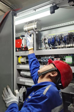内蒙邓家梁风电场针对齿轮箱高温问题,组织技术骨干进行自主研究,积极开展齿轮箱散热系统技改,高效完成电气接线连接及检查安装质量工作。