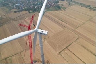 该项目位于湖北省襄阳市襄州区伙牌镇,一期规划装机容量10万千瓦,安装20台5兆瓦风力发电机组,塔筒轮毂中心高度160米,是风电公司系统目前设计塔筒高度最高的风电项目,同时也是首个钢混高塔筒技术应用示范工程。项目自开工建设以来,参建单位及人员克服混塔拼装、村落密布、人口稠密、麦收农忙、季风来临等诸多施工难题,团结奋战、克难攻坚,顺利完成了首台风机安装,积累了宝贵的混塔吊装施工经验,为加快推进项目施工进度,确保项目早日建成并网发电奠定了坚实基础。