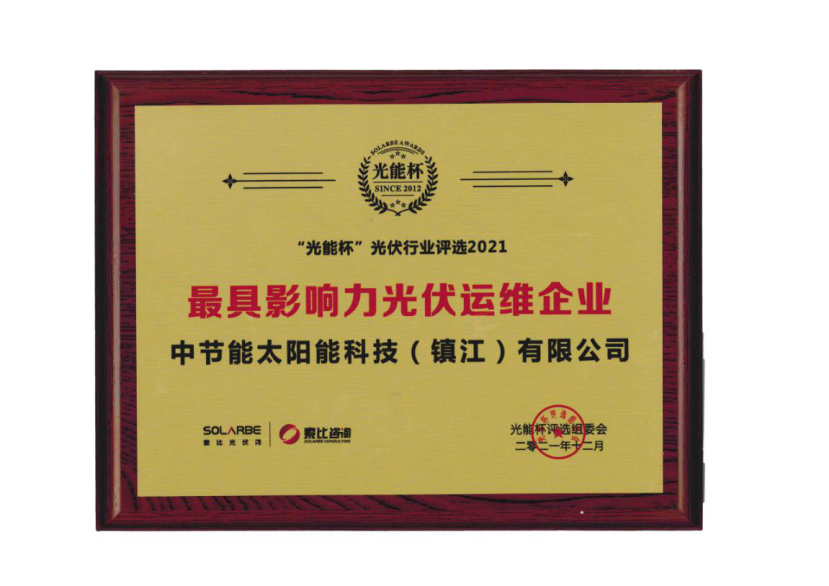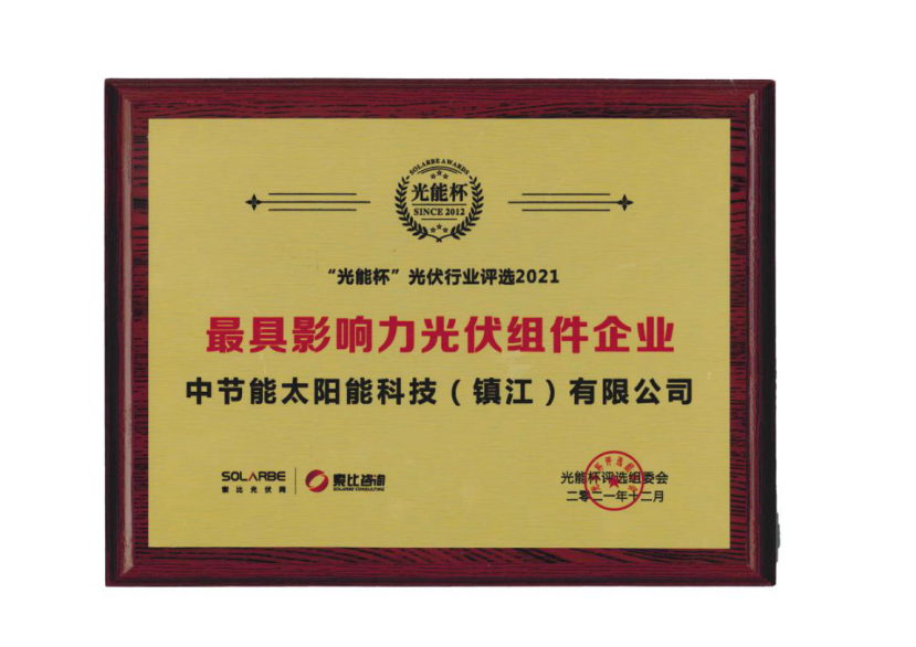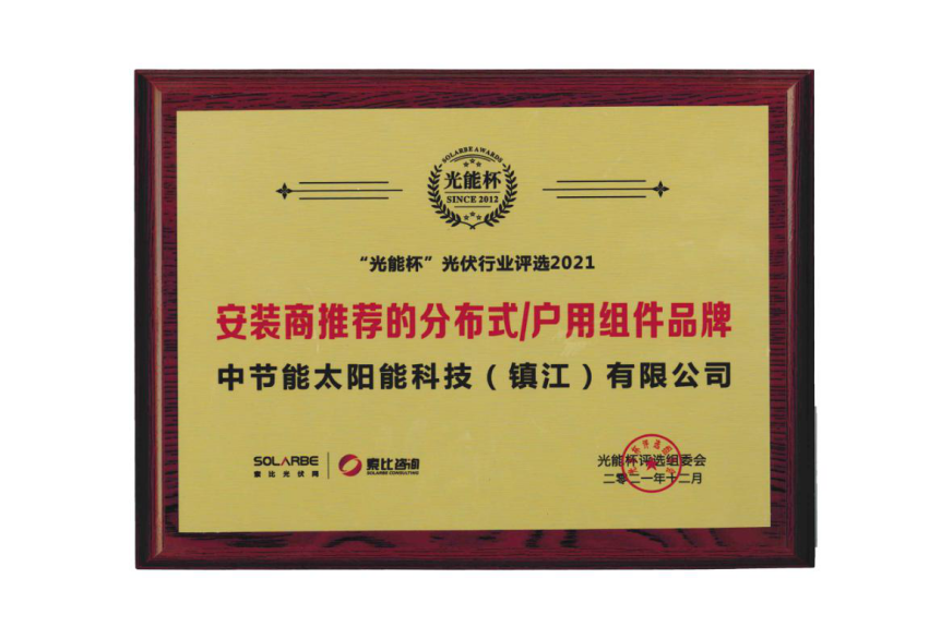 近日,中节能太阳能镇江公司凭借优秀的产品创新力、出色的品质与服务、卓越的品牌影响力,荣膺2021年度第三届“光能杯”跨年分享会暨第九届光能杯行业颁奖典礼“最具影响力光伏电池/组件企业”;“最具影响力 光伏运维企业”;“安装商推荐的分布式/户用组件品牌三项大奖”。