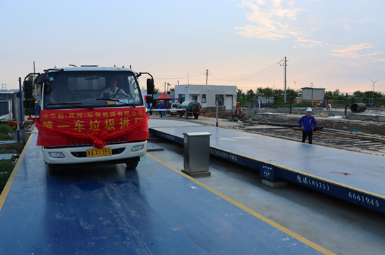 8月13日6点18分,中国环保商河项目首车垃圾顺利进厂。