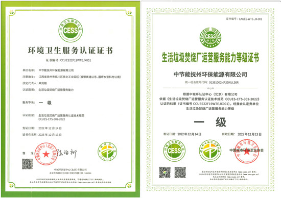 12月28日,中国环保抚州公司获得2022年环境卫生服务认证一级证书及生活垃圾焚烧厂运营服务等级一级证书。该认证由中国城市环境卫生协会主导,坚持高标准、高要求等原则,组织技术专家组采用资料评价和远程审查相结合的方式,依据《生活垃圾焚烧厂运营服务认证技术规范》(CCUES-CTS-302-2022),综合认证并发布认定结果。
