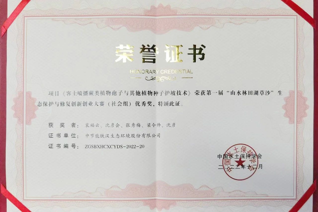 日前,第一届“山水林田湖草沙”生态保护与修复创新创业大赛(社会组)公布奖项,中节能铁汉“客土喷播蕨类植物孢子与其他植物种子护坡技术”项目荣获优秀奖。