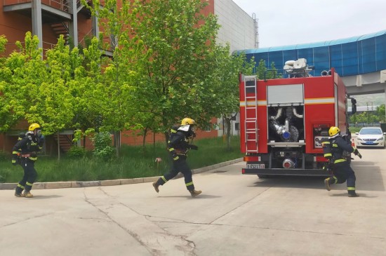 在演练中,模拟现场锅炉间着火点一处,公司发现火情及时灭火,事故扩大后,拨打119求救。消防站人员接到报警后迅速到场,消防员紧急奔赴着火点,打开消防栓,对接枪头,对准着火点喷水,迅速控制了火情。