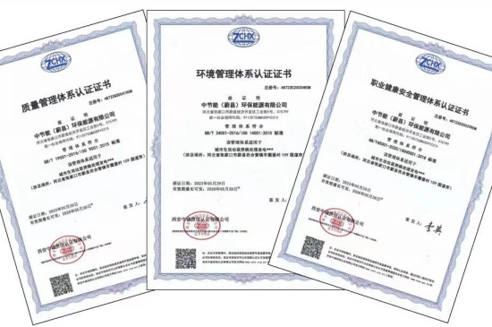 近期,中国环保蔚县公司顺利通过质量、环境、职业健康管理一体化认证并获得认证证书。