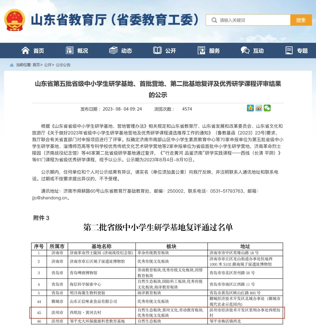 近日,山东省教育厅(省委教育工委)官网发布《山东省第五批省级中小学生研学基地、首批营地、第二批基地复评及优秀研学课程评审结果的公示》。根据评审结果,中节能铁汉下属西纸坊·黄河古村等46家第二批省级研学基地通过复评。