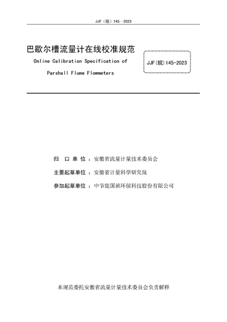 近日,中节能国祯合肥区域公司参编的安徽省地方标准《巴歇尔槽流量计在线校准规范》JJF(皖)145-2023由安徽省市场监督管理局批准发布。至此,合肥区域公司已主编或参编的地方标准达12部。