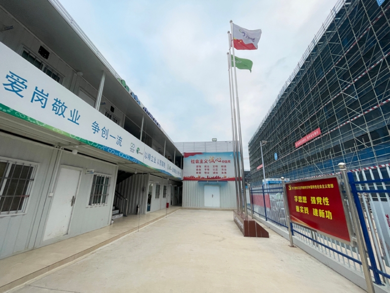 安全为基,质量为要,生产进度有保障。“党建+安全生产”,筑牢生产红色“防护网”。项目部充分利用工地宣传栏、宣传横幅及相关展板等开展安全宣传教育。“三双筷子三只碗,妻儿盼你平安归”、“谁主管、谁负责,谁在岗、谁负责”、“勤查勤检,消除隐患,常抓不懈,防微杜渐”......在项目建设现场,蓝网覆盖的厂房上挂着一条条醒目的安全标语,“我们项目工期非常紧张,但是安全第一,质量第一的原则不会改变。”项目负责人介绍到,他们严抓安全生产,强化职工安全质量教育,在项目一线营造安全不松懈、全力以赴保质量的良好氛围,确保项目在安全的前提下保质保量完成。
