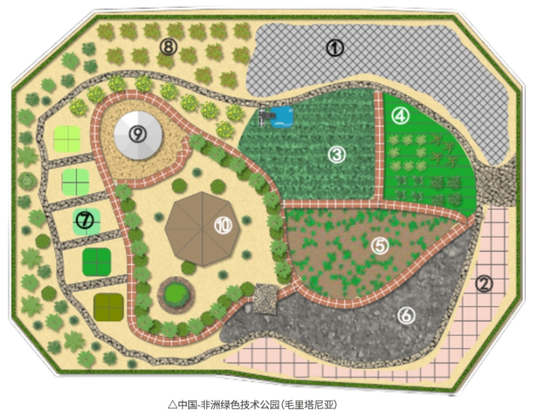 中国-非洲绿色技术公园(毛里塔尼亚)项目作为深入贯彻落实习近平主席在中非合作论坛第八届部长级会议开幕式上的主旨演讲精神,支持“非洲绿色长城”建设的重要举措和构建中非绿色命运共同体的重要载体。公园选址在西非毛里塔尼亚首都努瓦克肖特,占地100亩(约合6.67公顷),包括阻沙固沙技术区、节水灌溉技术区、改土技术区、引种繁育区等,对于中国优秀的荒漠化防治产品、技术、企业走进非洲,在非洲绿色长城建设中推广应用更具有优势和前景。