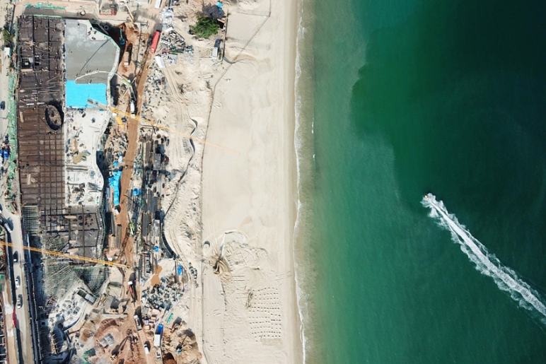 三月的小梅沙湾畔,一派繁忙的建设景象。