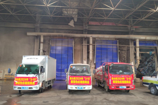3月15日,中国环保盐山公司助力盐山县市场监督管理局开展“3·15”销毁假冒伪劣商品活动。