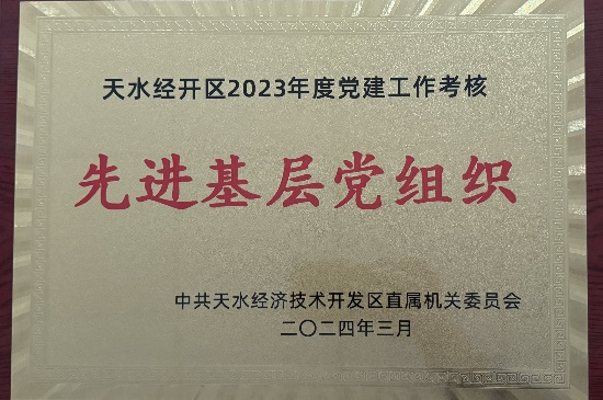 3月14日,天水经开区直属机关党委召开(扩大)会议。大会表彰了2023年度经开区党建工作考核先进基层党组织,中国环保天水公司党支部荣获2023年度“先进基层党组织”荣誉称号。