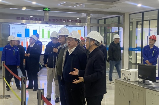 赵鹏高首先深入现场调研,对公司环保科普展馆、中央控制室、生产工艺流程、运营状况及节能减排工作的落实情况进行了考察。