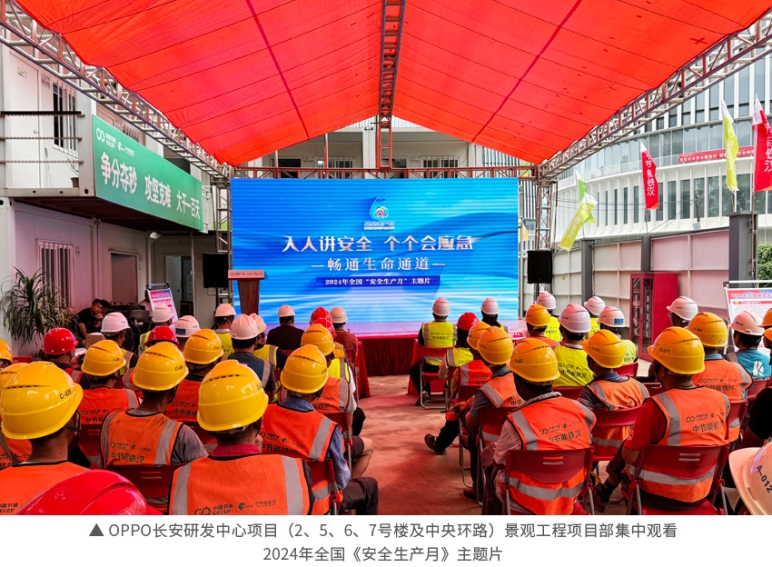 各分子公司、项目部快速启动部署。6月6日下午,铁汉山艺在OPPO项目现场举行2024年“安全生产月”活动启动仪式,集中观看了《2024年安全生产月主题宣传片》、部署了“安全生产月”活动计划,各分包商代表做了表态发言,铁汉山艺主要负责人作总结讲话,强调进一步压实安全生产责任,落实安全生产月各项活动安排,确保安全生产形势平稳。会上,向企业安全主任、项目负责人、安全主管人员分发《安全管理工作手册》,发放了应急物资和安全月宣教材料,并进行全员安全宣誓及签名仪式。其他分子公司、各项目部按照公司统一部署,在各驻地第一时间完成启动部署。
