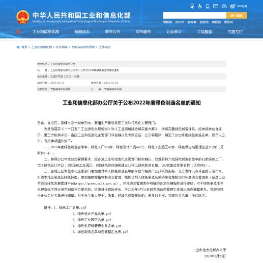 国家级“绿色制造名单”是为贯彻落实《“十四五”工业绿色发展规划》,强化绿色制造标杆引领,而贯彻实施的绿色制造工程。由工业和信息化部组织,经申报单位自评价、第三方机构评价、省级工业和信息化主管部门评估确认、工业和信息化部专家论证、公示等程序,最终在全国范围内层层选拔评定。