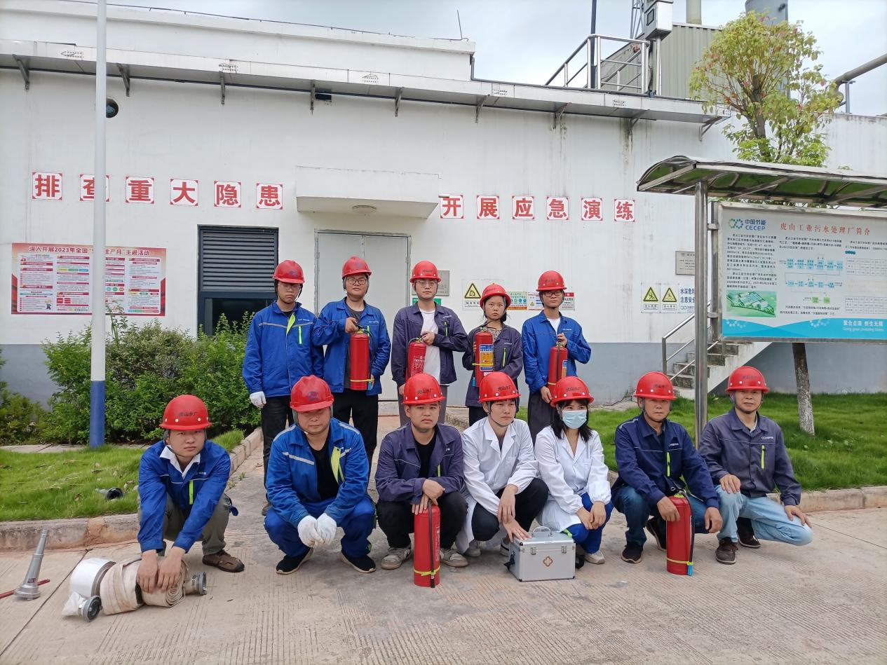 2023年6月5日,江西公司虎山工业污水处理厂围绕“人人讲安全,个个会应急”的主题内容,组织全体员工开展消防应急演练,提高火灾发生自救能力,通过消防应急演练,增强员工消防安全意识。