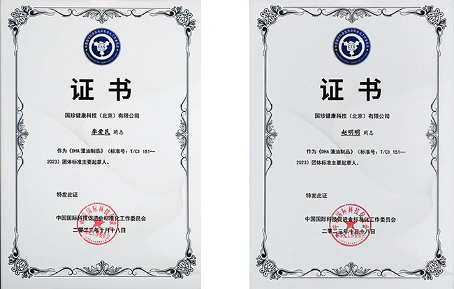 国珍牌DHA藻油亚麻籽油软胶囊自2022年3月上市以来,凭借专业的组方、过硬的保健食品功能,赢得了市场的普遍认可与好评。为更进一步彰显核心专利原料DHA藻油在行业中的竞争优势,健康产业公司国珍健康研究院牵头起草了《DHA藻油制品》团体标准。根据《中国国际科技促进会标准化工作委员会团体标准管理办法》的有关规定,《DHA藻油制品》团体标准经过编制起草、征求意见、评审、修改、审查、批准及备案等标准制定流程,经中国国际科技促进会标准化工作委员会及相关专家技术审核,通过审批并正式发布。国珍健康研究院研究人员作为该团体标准主要起草人,在团体标准制定过程中做出了突出贡献。