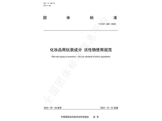 此次发布的《化妆品用抗衰成分 活性物使用规范》团体标准(T/CIET 248-2023)经过反复论证和严格审查,提供了皮肤衰老、抗皱、紧致、抗衰术语和定义的基础理论依据,以及常见的化妆品用抗衰活性物的分类、化妆品用抗衰活性物的起效浓度参考,适用于宣称具有抗衰功效的化妆品,能够切实指导抗衰化妆品的成分、活性物的规范使用,填补了行业空白,具有行业领先水平,对行业的高质量发展起到了有效引领和支撑作用。