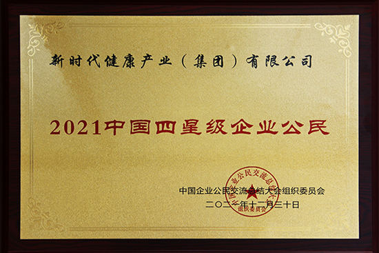 日前,中国社会工作联合会企业公民委员会发布年度表彰决定,新时代集团下属健康产业公司以强烈的社会责任感和卓越的履责表现,喜获“2021中国四星级企业公民”荣誉称号。