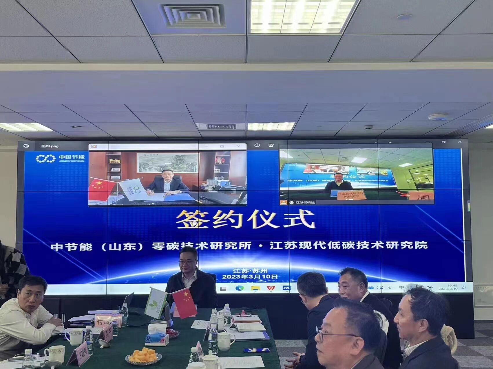 日前,中节能实业下属山东零碳技术研究所与江苏现代技术研究院签署战略合作协议,山东公司及山东零碳技术研究所负责人,江苏现代低碳技术研究院副院长王晓翔作为双方签约代表进行签约。