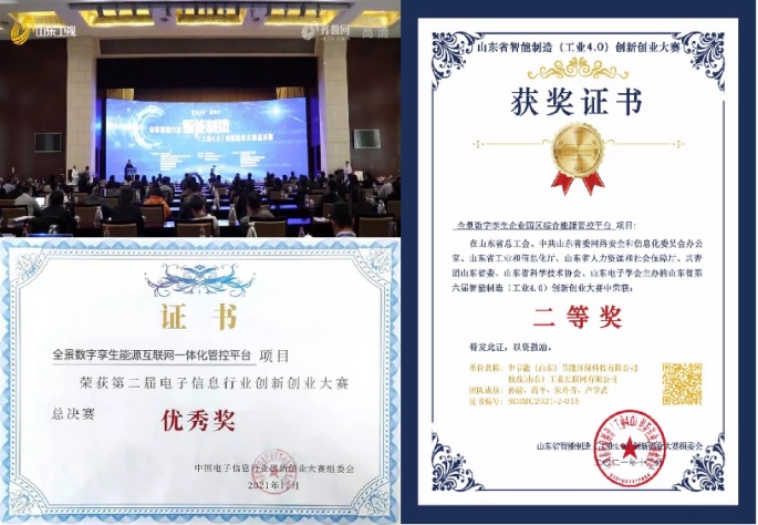 近日,中节能实业发展有限公司下属中节能(山东)零碳技术研究所“全景数字孪生企业、园区综合能源管控平台”项目和“全景数字孪生能源互联网一体化管控平台”项目分别荣获山东省第六届智能制造(工业4.0)创新创业大赛二等奖和第二届中国电子信息行业创新创业大赛优秀奖。