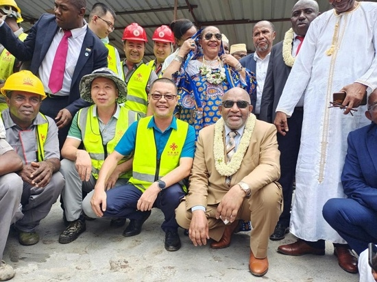 当地时间2月23日,新任非盟轮值主席、科摩罗总统阿扎利先生一行到由中国地质承建的援科摩罗莫埃利岛公路项目视察工程建设进展。