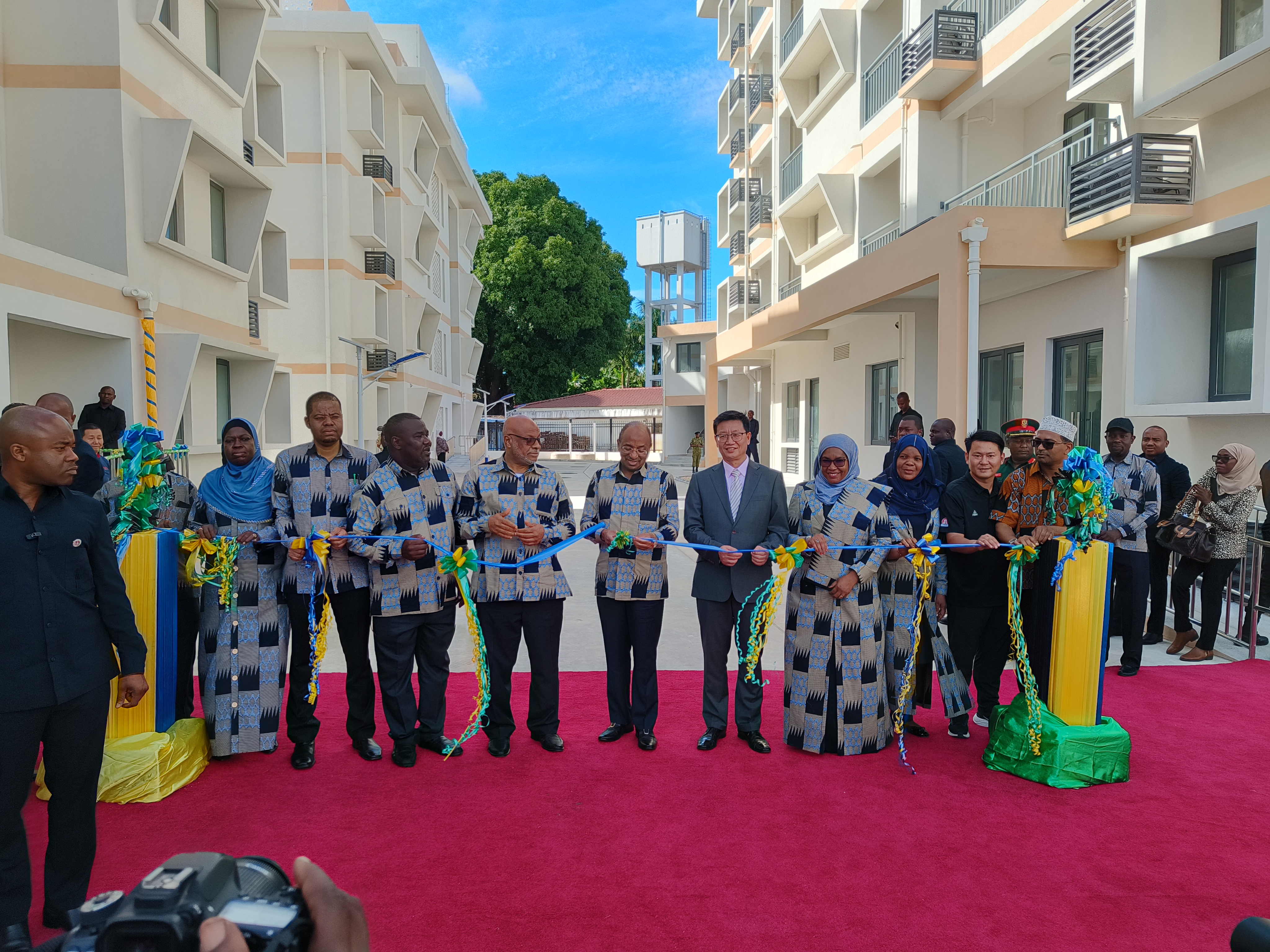 援坦桑尼亚桑给巴尔阿卜杜拉·姆才医院医生宿舍项目总占地面积2800平方米,总建筑面积3700平方米,包含4栋多层住宅楼共76间套房,并配套公共餐厅和健身房等服务设施。项目于2023年3月开工,2024年6月完成竣工验收,较计划工期提前一个月完成。