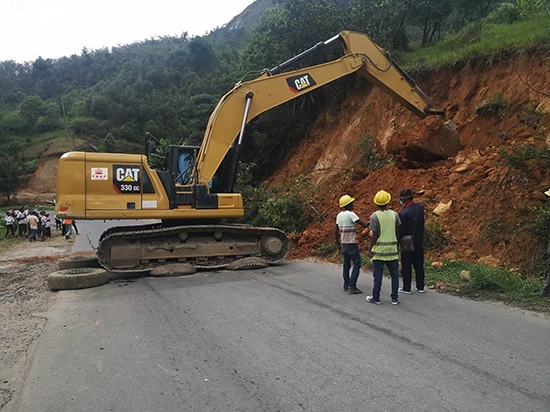 此次抢险救灾,中国地质投入挖机4台,装载机2台,压路机1台,平板车1辆,载重卡车数十车次,抛石料近500方,清理塌方数千余方。