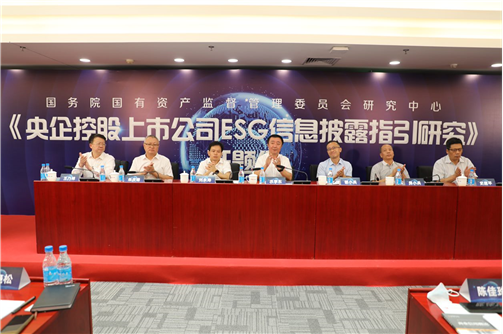2022年7月29日上午,由国务院国资委研究中心主办的《中央企业控股上市公司ESG信息披露指引研究》开题会在北京顺利召开。国资委研究中心主任衣学东主持会议。国资委产权局谢小兵副局长、社会责任局张晓松处长代表课题指导单位先后发言。中国节能环保集团有限公司朱庆锋总会计师受邀出席并致辞。