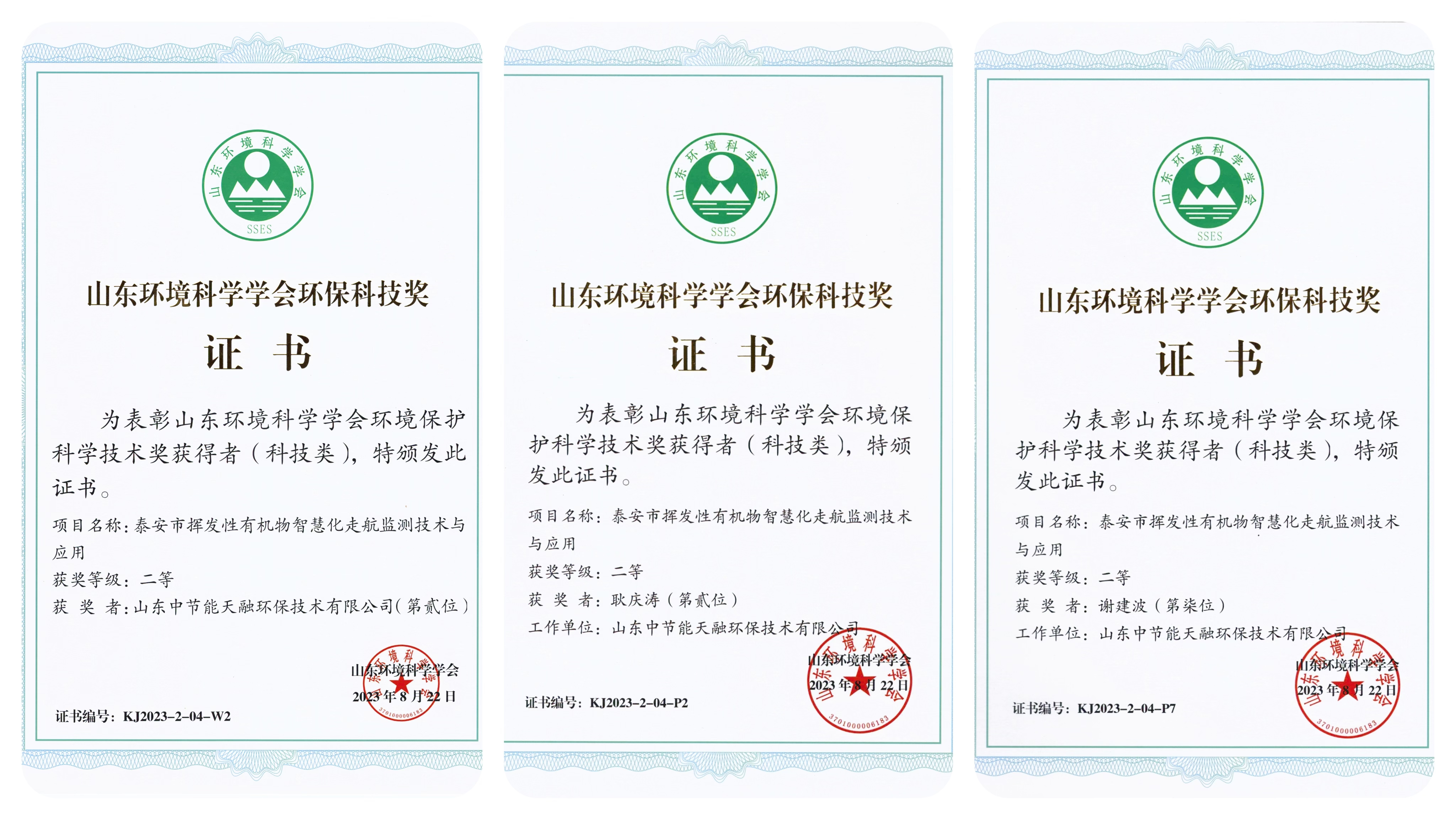 近日,中节能大数据有限公司下属山东中节能天融环保技术有限公司(以下简称中节能山东天融公司)联合泰安市生态环境局提报的“泰安市挥发性有机物智慧化走航监测技术与应用项目”,荣获2023年度山东环境科学学会环境保护科学技术奖(科技类)二等奖。